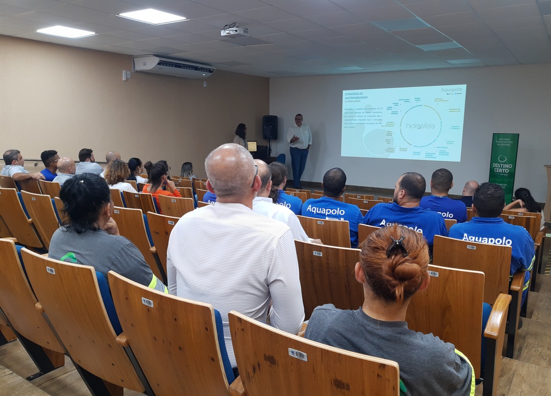 Reforçando o compromisso com a sustentabilidade e com a estratégia Hidrosfera GS Inima Brasil, o Aquapolo avançou na implementação do Programa Destino Certo. Na tarde do dia 12 de Janeiro de 2023, as equipes de QSMS do Aquapolo e da DRIS - Diretoria de Relações Institucionais e Sustentabilidade reuniram líderes e equipes do Aquapolo para apresentação de conceitos e objetivos do Programa voltado para gestão sustentável de materiais e resíduos e para conhecer os principais resultados do ciclo 2022.