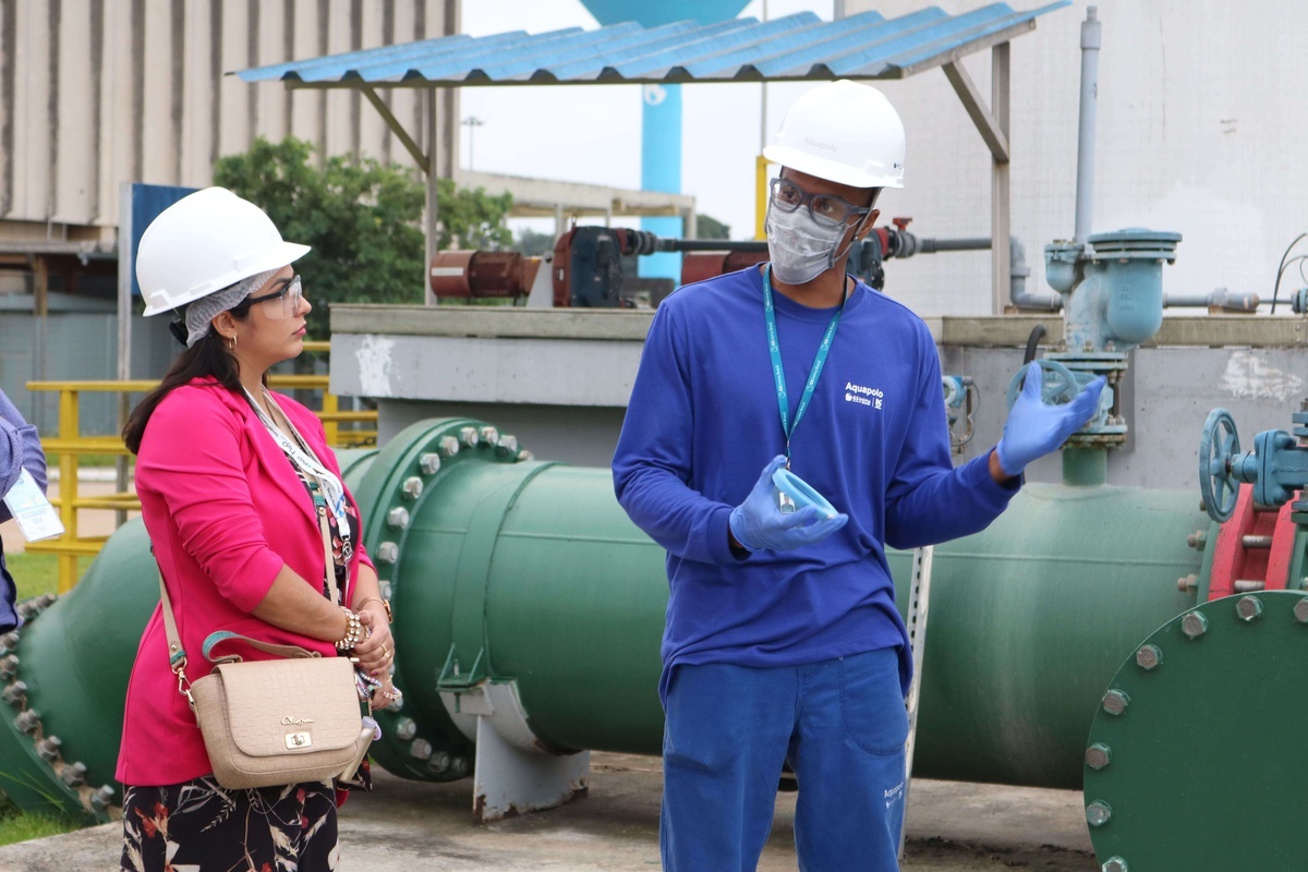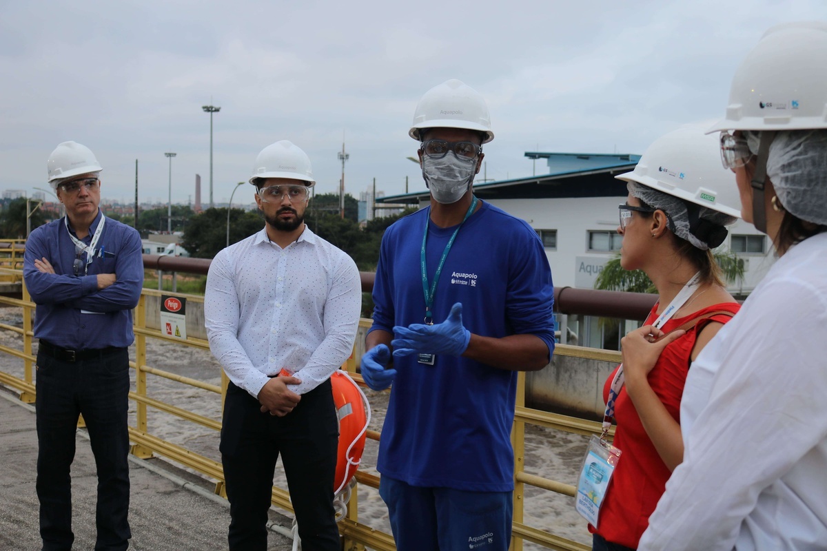Os grupos de visitantes tiverem a oportunidade de conhecer a maior planta de produção de água de reúso na América do Sul e todos os processos que fortalecem o Aquapolo como um projeto inovador, sustentável e pioneiro no Brasil.